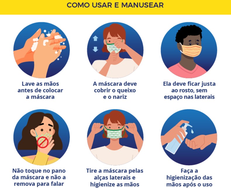 Lembre-se que o uso de máscaras é contraindicado para crianças menores de dois anos e pessoas com deficiência que impossibilite a retirada da máscara em caso de sufocamento.