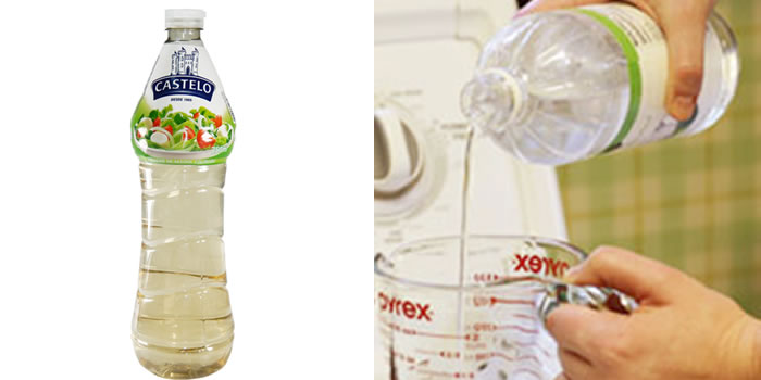 1. Coloque em um balde com água 6 colheres de sopa de vinagre e uma medida de sabão em pó;